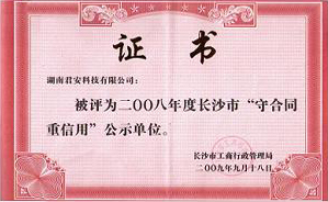 由長(zhǎng)沙市工商行政管理局舉辦的2008年度長(zhǎng)沙市“守合同重信用”單位評(píng)選,如今已完美謝幕,在這次評(píng)選活動(dòng)中,我司榜上有名。加上這項(xiàng)榮譽(yù),我司在2008年度內(nèi),可喜可賀的是共獲得十項(xiàng)虛榮,因此2008年也成為公司自成立以來獲得最多榮譽(yù)的一年,公司成為省內(nèi)同行中資質(zhì)門類最全,資質(zhì)級(jí)別最高,獲得榮譽(yù)最高的企業(yè)之一