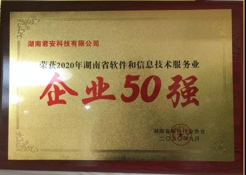 君安科技榮獲“2020年湖南省軟件和信息技術服務業(yè)企業(yè)50強"