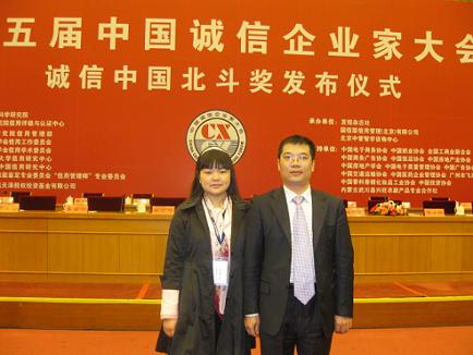 2010年4月29日上午9時(shí)在北京京西賓館第五屆誠(chéng)信企業(yè)家大會(huì)隆重召開(kāi),國(guó)家領(lǐng)導(dǎo)人王文元、蔣正華、張榕明等出席了本次盛會(huì)。